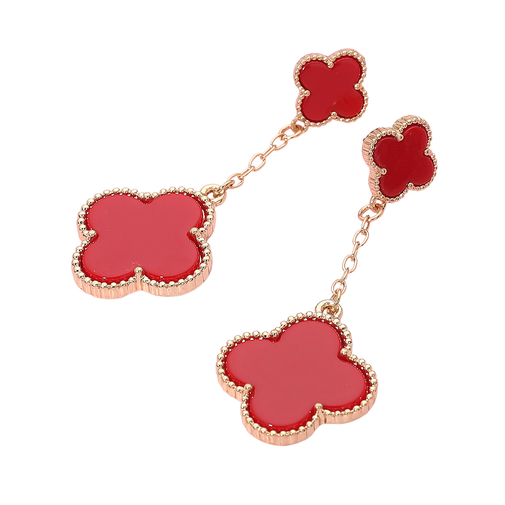 • Stylish chain drop earrings featuring layered quatrefoil charms for a soft, elegant look with gentle movement. This timeless silhouette adds refined detail to everyday outfits and special occasion styling, making it a versatile choice for boutiques, gift assortments, and curated jewelry collections seeking modern yet classic appeal.