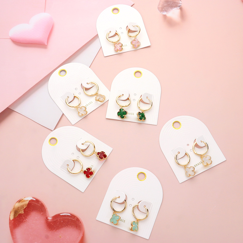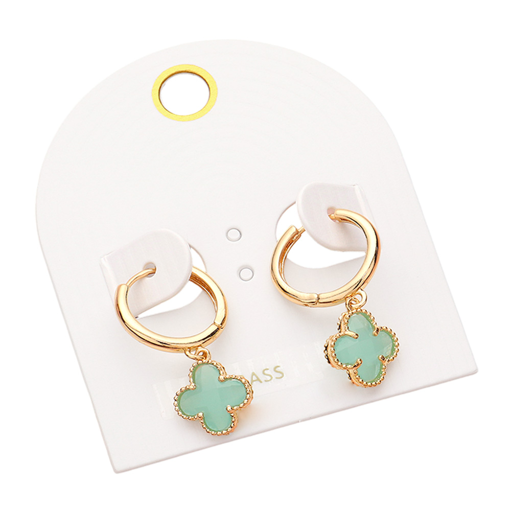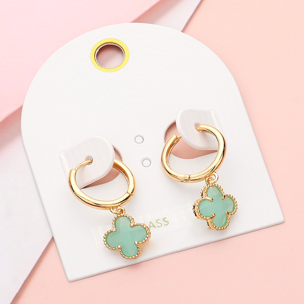 Quatrefoil Stone Cluster Dangle Huggie Earrings
