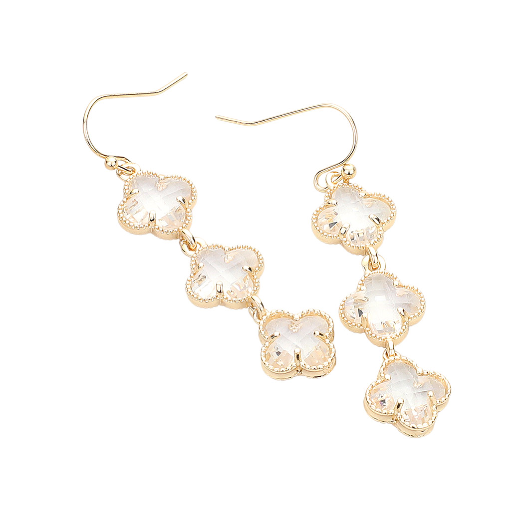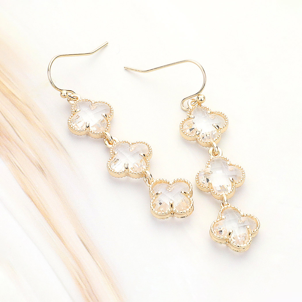 Quatrefoil Stone Cluster Dropdown Dangle Earrings