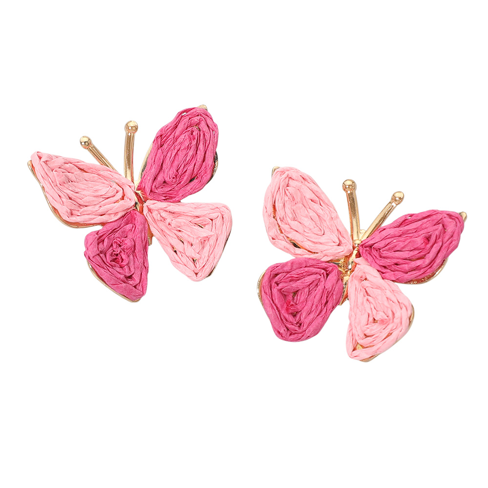 • These butterfly raffia woven texture stud earrings feature dimensional layered detailing with a lightweight feel and charming silhouette. Designed to add playful elegance and boutique appeal, they are perfect for everyday wear, gifting, seasonal collections, spring outfits, casual styling, and trend-driven accessory assortments.