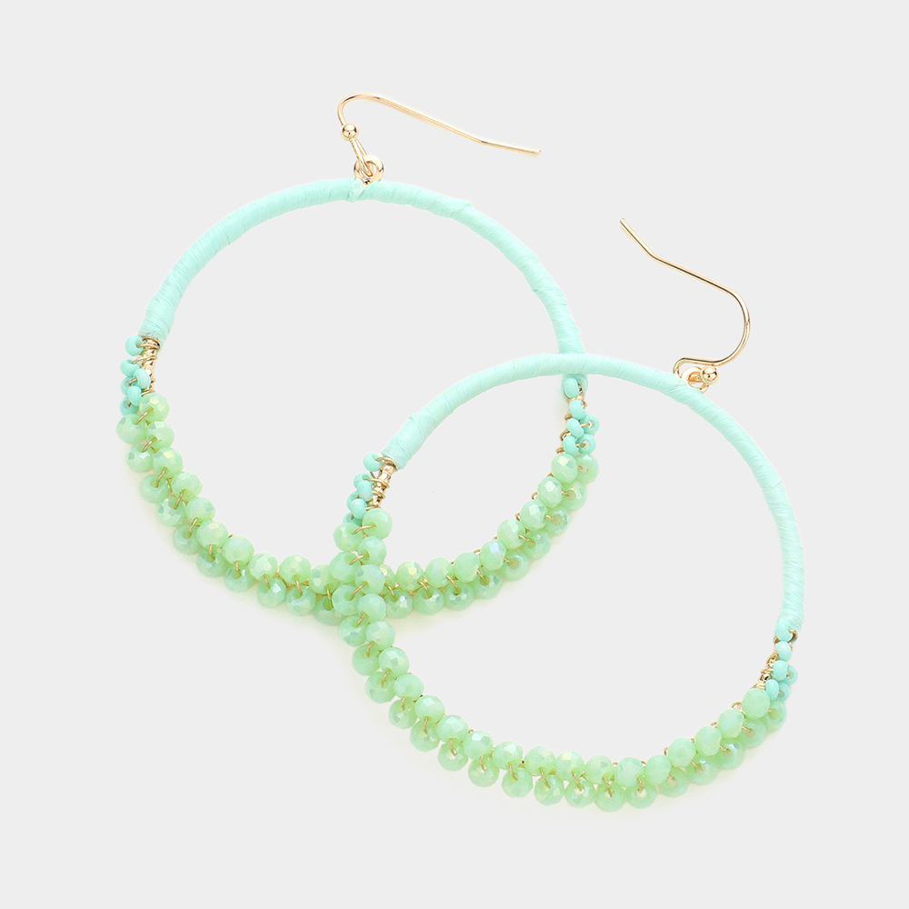 Raffia Faceted Bead Wrapped Open Metal Circle Dangle Earrings