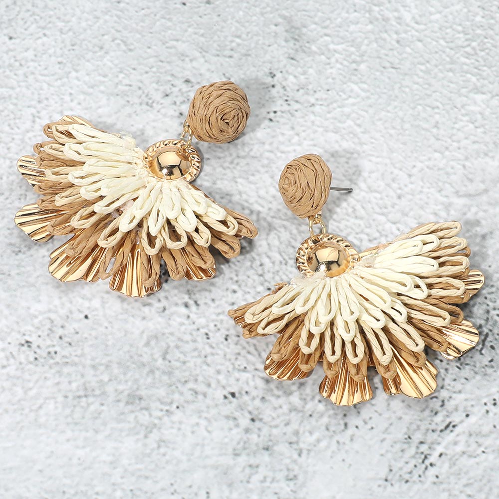 Raffia Fan Drop Dangle Earrings Raffia Fan Drop Dangle Earrings