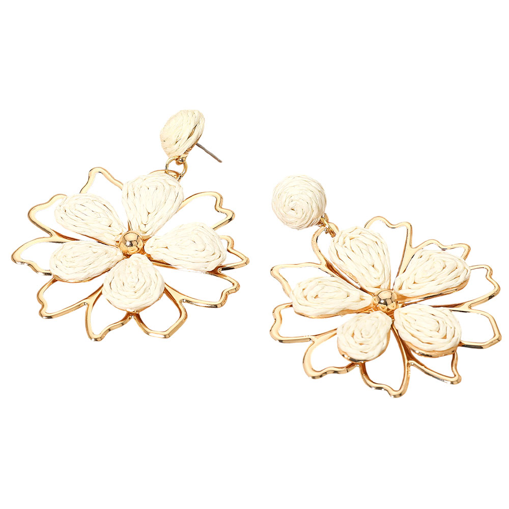 Raffia Wrapped Floral Petal Dangle Earrings Raffia Wrapped Floral Petal Dangle Earrings