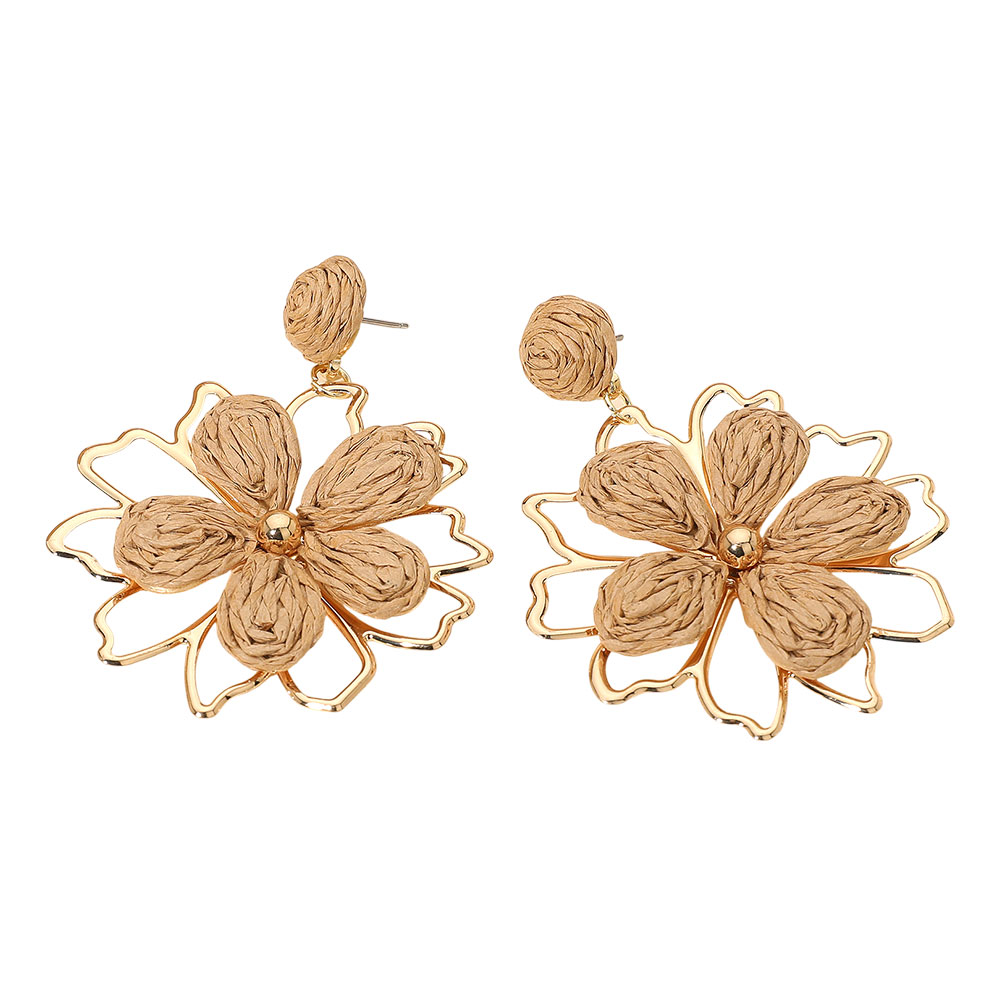 Raffia Wrapped Floral Petal Dangle Earrings Raffia Wrapped Floral Petal Dangle Earrings