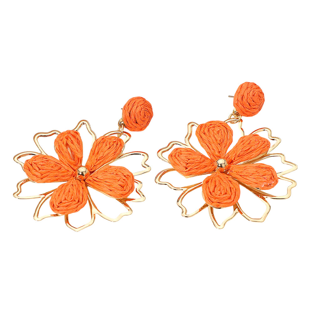 Raffia Wrapped Floral Petal Dangle Earrings Raffia Wrapped Floral Petal Dangle Earrings
