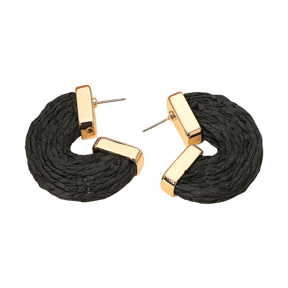 • Elevate your accessory collection with bold hoop earrings featuring a textured raffia braided design and polished accents. A versatile statement piece ideal for everyday styling or adding flair to evening and special-occasion looks.