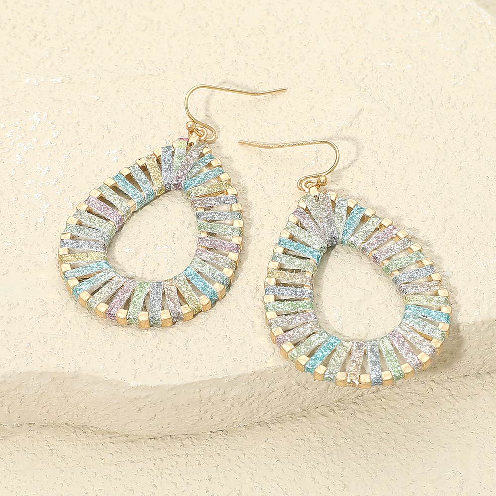 • Woven teardrop earrings with an open center design and intricate faux leather wrap detail. Lightweight and eye-catching, these dangle earrings add a bold, artisanal flair to any outfit. Ideal for casual or vacation-ready looks.