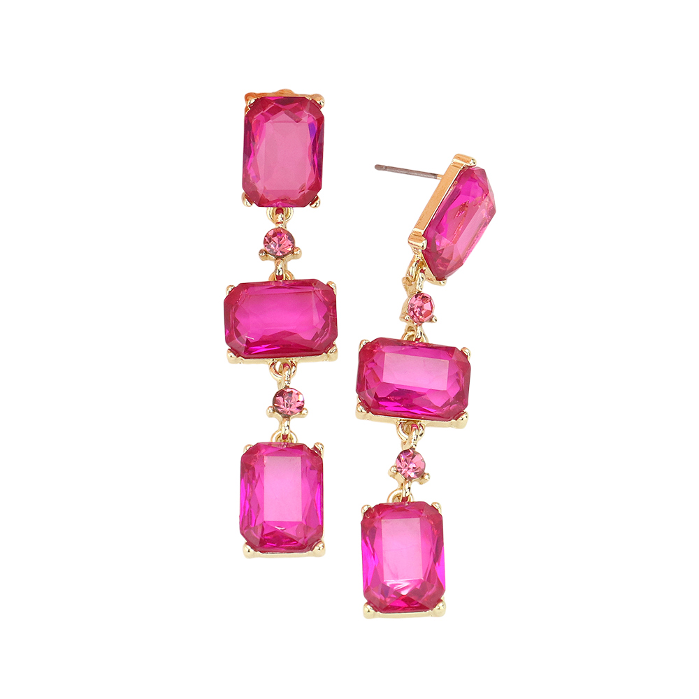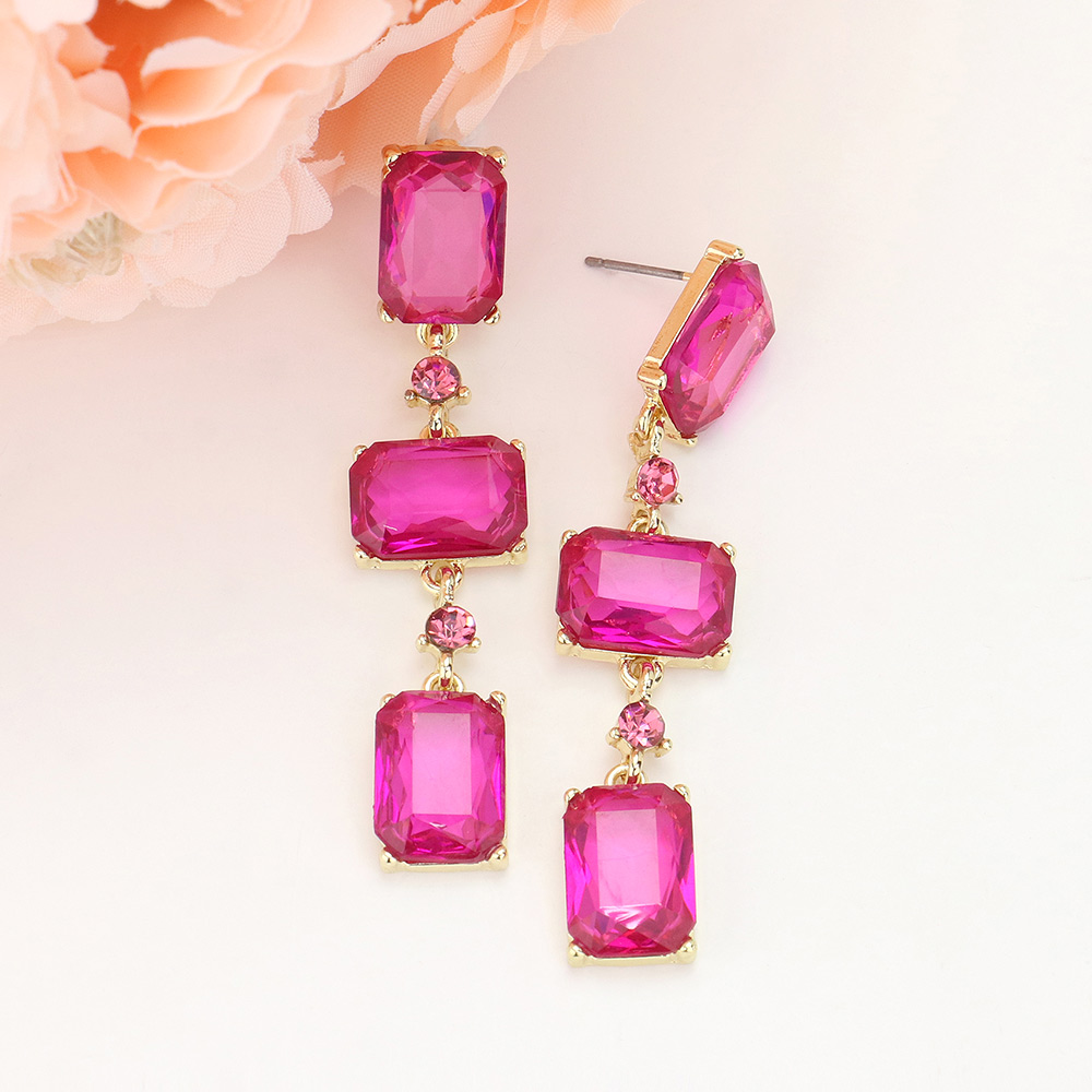 Teardrop Stone Centered Rhinestone Paved Rim Dangle Evening Earrings