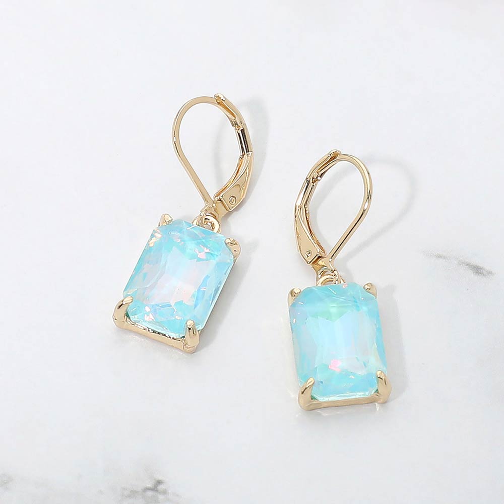 Rectangular Glass Stone Drop Dangle Earrings