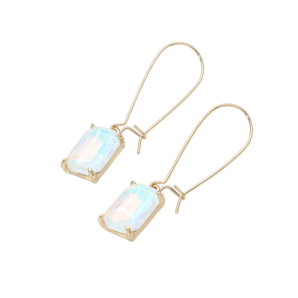 • Elegant drop earrings featuring a faceted rectangular stone suspended from a sleek hook silhouette. Designed to add refined sparkle and movement, this versatile style transitions effortlessly from daytime looks to evening wear, making it a strong addition to boutique jewelry selections, gift assortments, and trend-forward accessory collections.