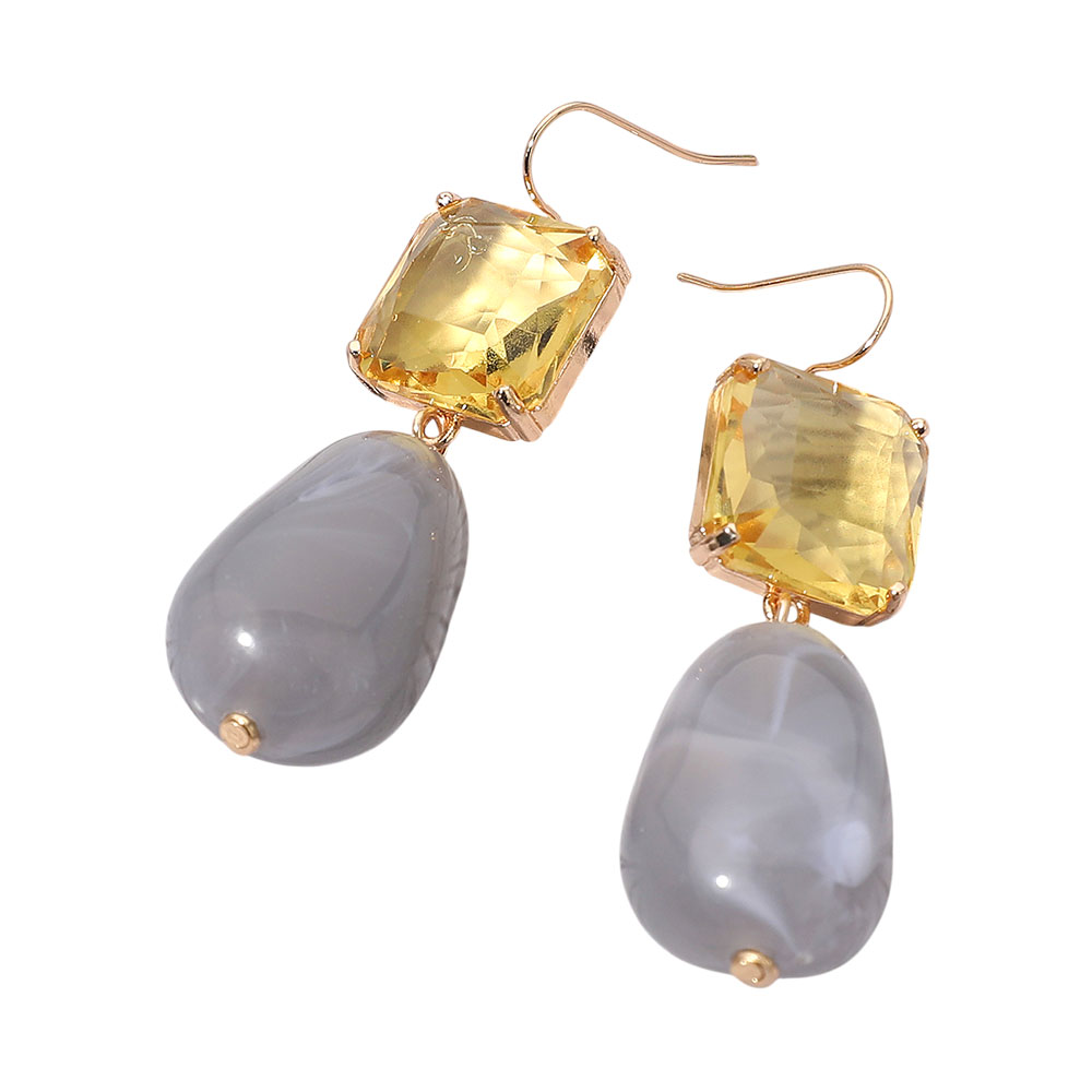 • These elegant drop earrings feature faceted gemstone-inspired accents paired with smooth teardrop drops for a refined, artistic look. Lightweight and eye-catching, they add polished sophistication to both everyday outfits and special-occasion ensembles, making them a versatile jewelry staple.