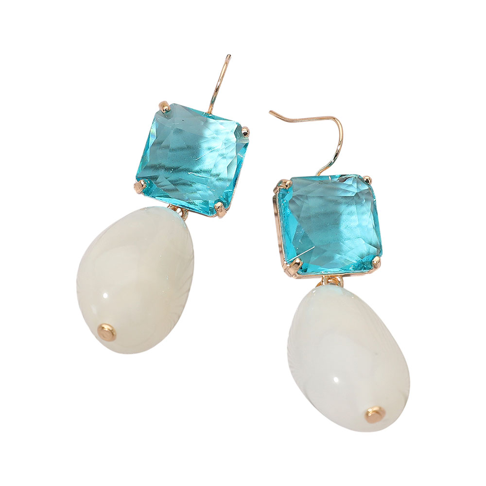 Rectangular Stone Cluster Accent Marbled Resin Pebble Drop Dangle Earrings Rectangular Stone Cluster Accent Marbled Resin Pebble Drop Dangle Earrings
