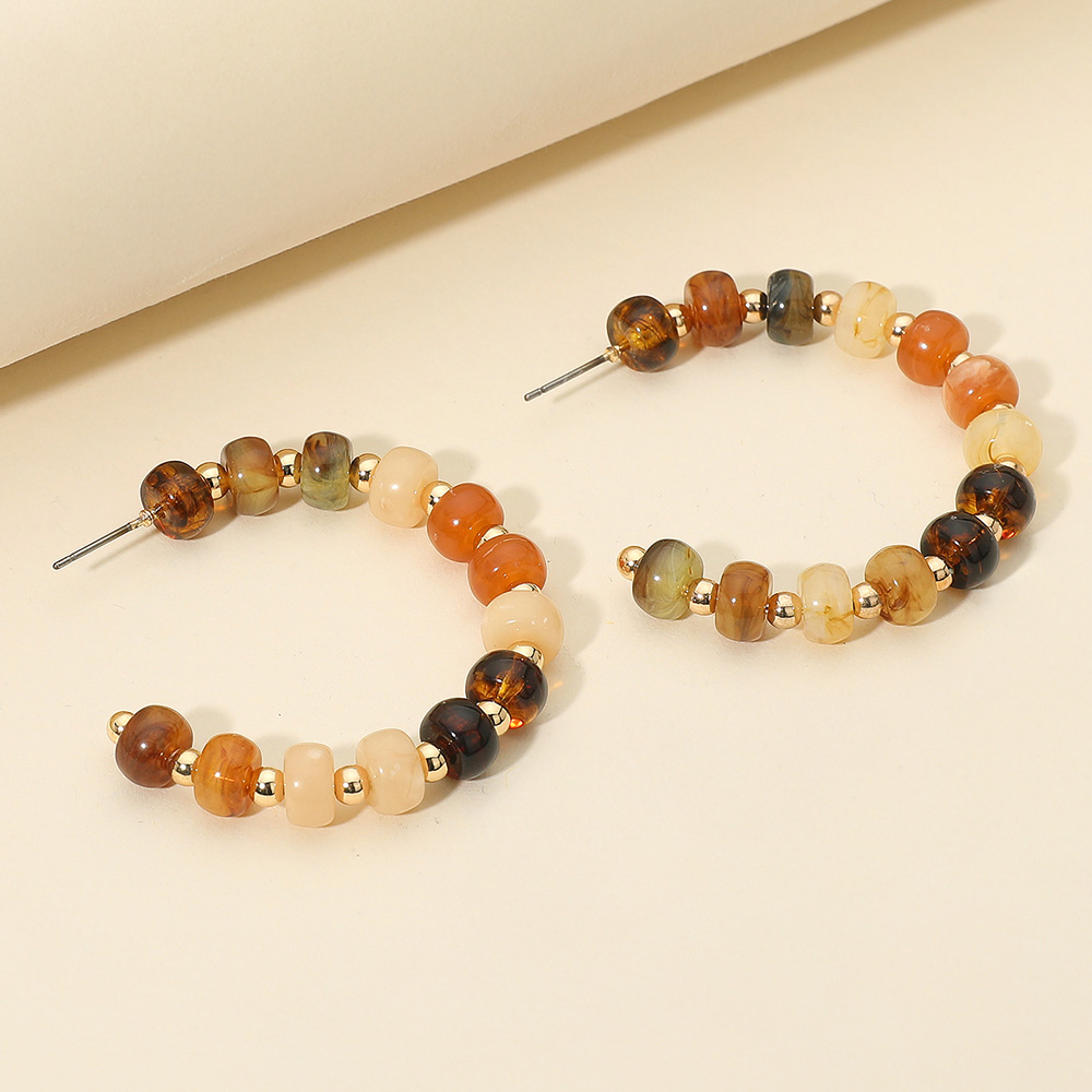 • Stylish beaded hoop earrings featuring glossy resin beads and gold-tone accents. Lightweight and comfortable for daily wear, these trendy hoops add a warm, modern touch to any outfit. Perfect for casual looks or gifting.