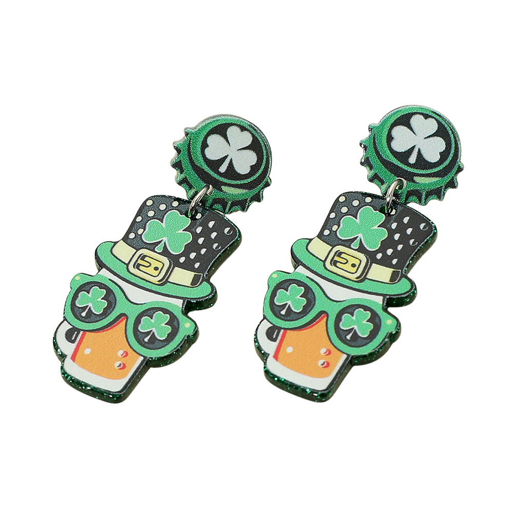 Details • Size : 0.8" X 1.9" • Post Back • Fun leprechaun drop earrings featuring a playful character design with shamrock details and festive charm. A bold accessory for St. Patrick’s Day celebrations, parades, themed parties, and seasonal outfits, perfect for adding humor, personality, and eye-catching appeal to holiday looks. • Lead and Nickel Compliant