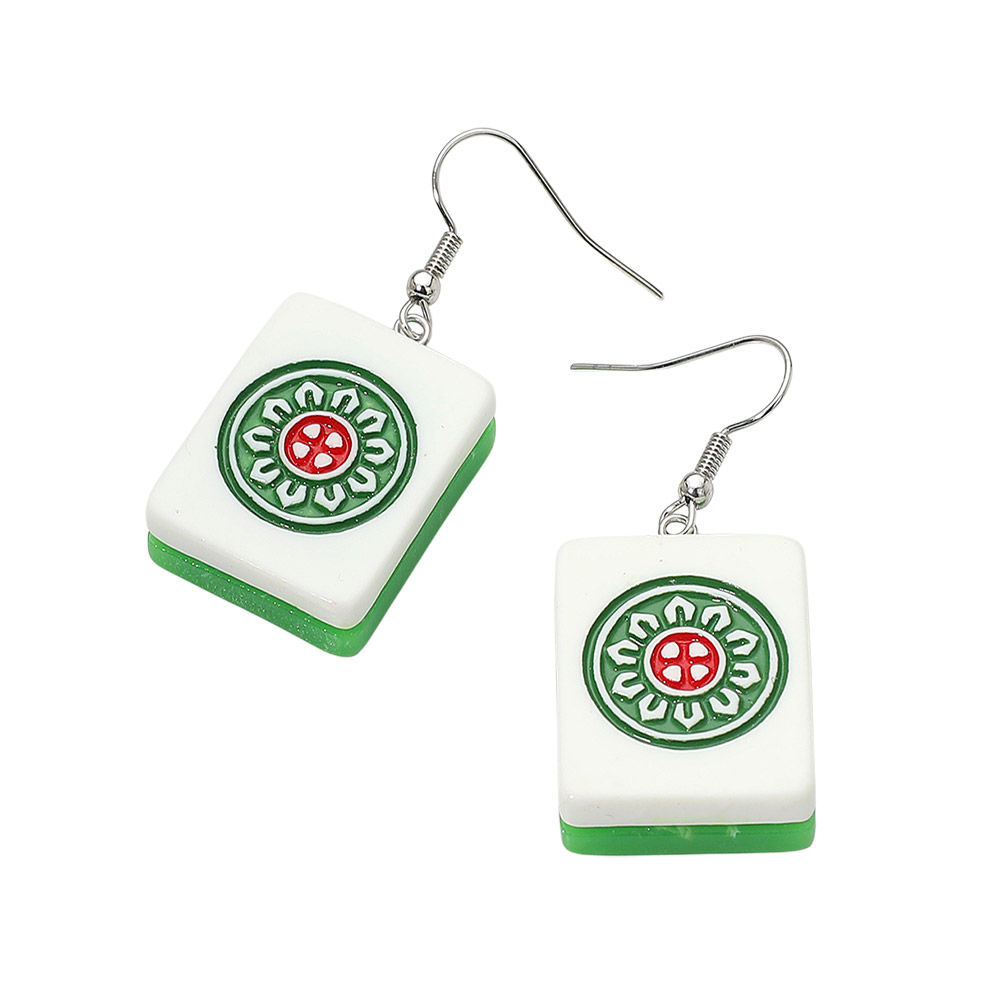 Resin Mahjong Tile Dangle Earrings Resin Mahjong Tile Dangle Earrings Resin Mahjong Tile Dangle Earrings