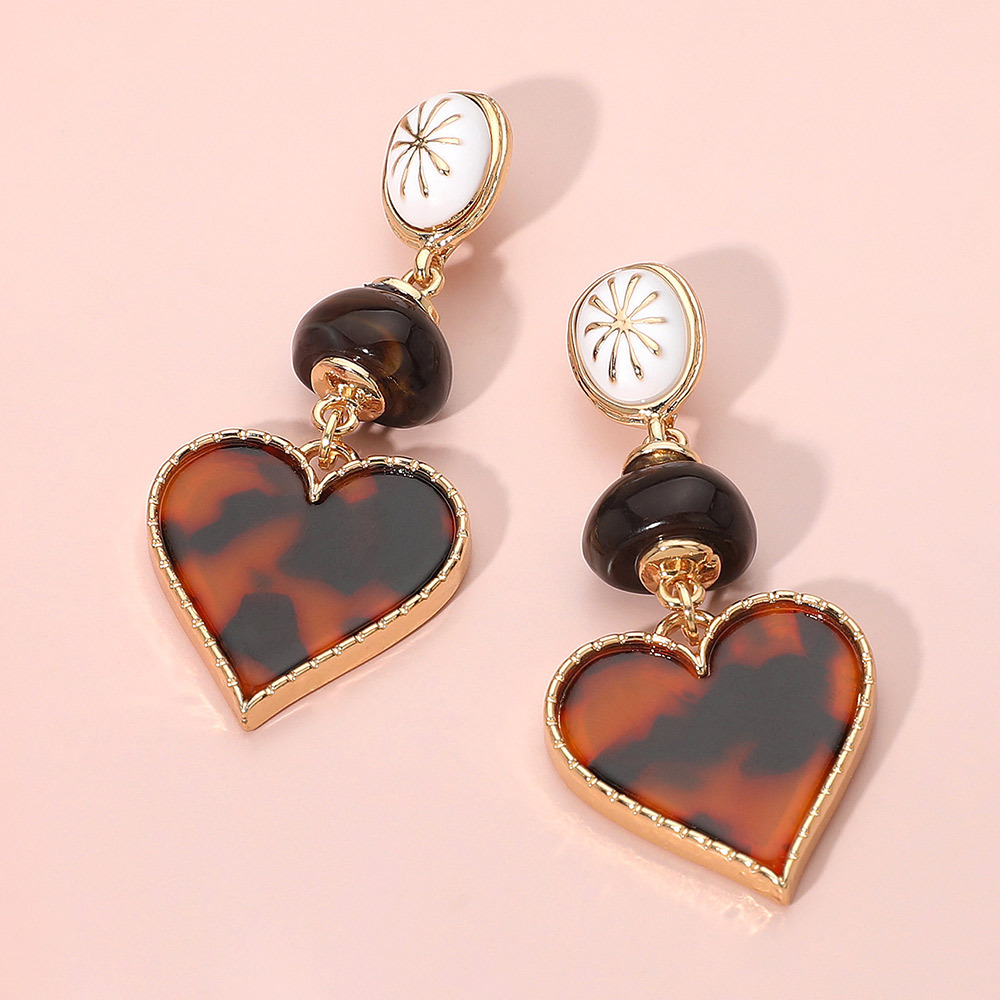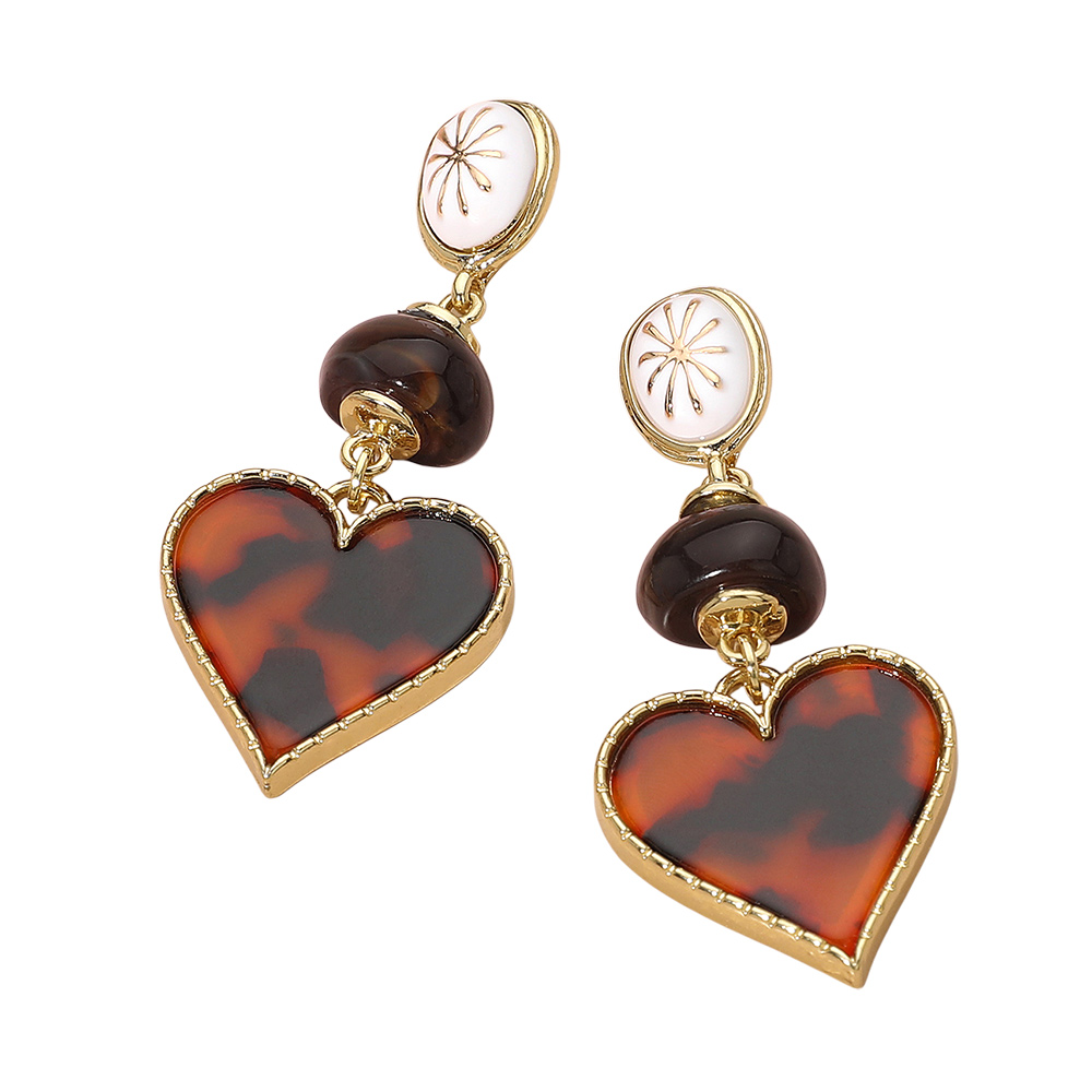 • Stylish heart drop earrings featuring a bold tortoise-pattern heart charm, layered bead details, and an elegant top accent. A standout accessory that adds chic personality to any look, perfect for elevating everyday outfits or gifting someone special.