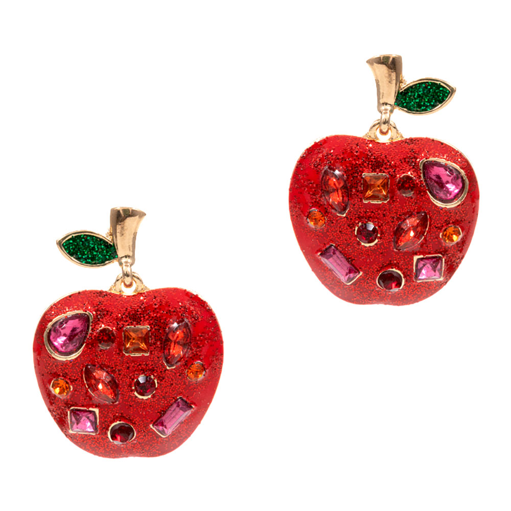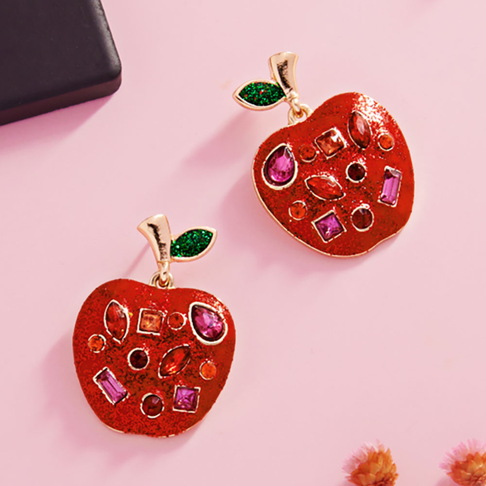 Details • Size : 1" X 1.25" • Titanium Post Back • Whimsical apple-shaped drop earrings featuring faceted accents for eye-catching sparkle. Lightweight and playful, they add a fun statement to casual outfits, party looks, themed events, or gifting moments while staying comfortable for all-day wear. • Hypoallergenic • Lead and Nickel Compliant