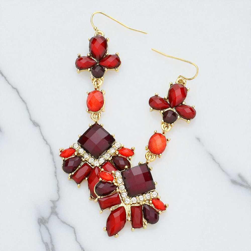 Marquise Stone Cluster Butterfly Drop Accent Rhinestone Paved Necklace