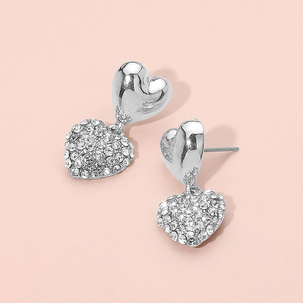 Rhinestone Embellished Heart Dangle Earrings Rhinestone Embellished Heart Dangle Earrings Rhinestone Embellished Heart Dangle Earrings
