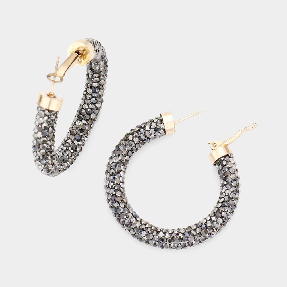 Clear Stone Detail Rhinestone Pave Hoop Earrings