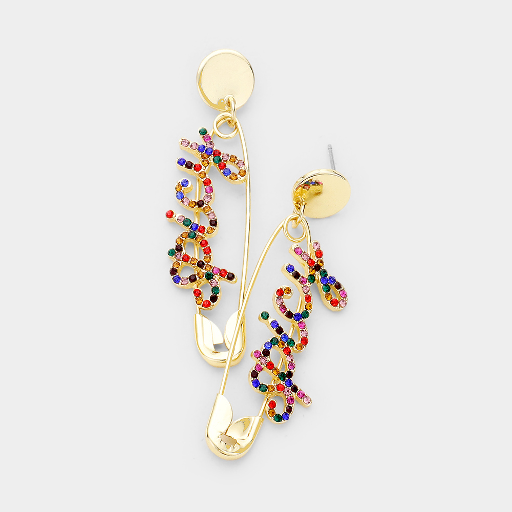 Rhinestone Pave Spicy Safety Pin Earrings