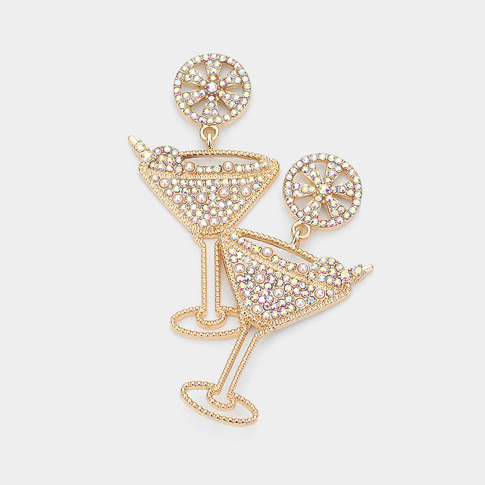 Rhinestone Pearl Paved Cocktail Dangle Earrings