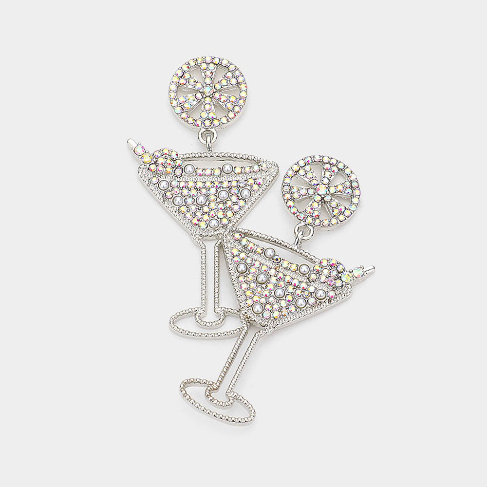 Rhinestone Pearl Paved Cocktail Dangle Earrings