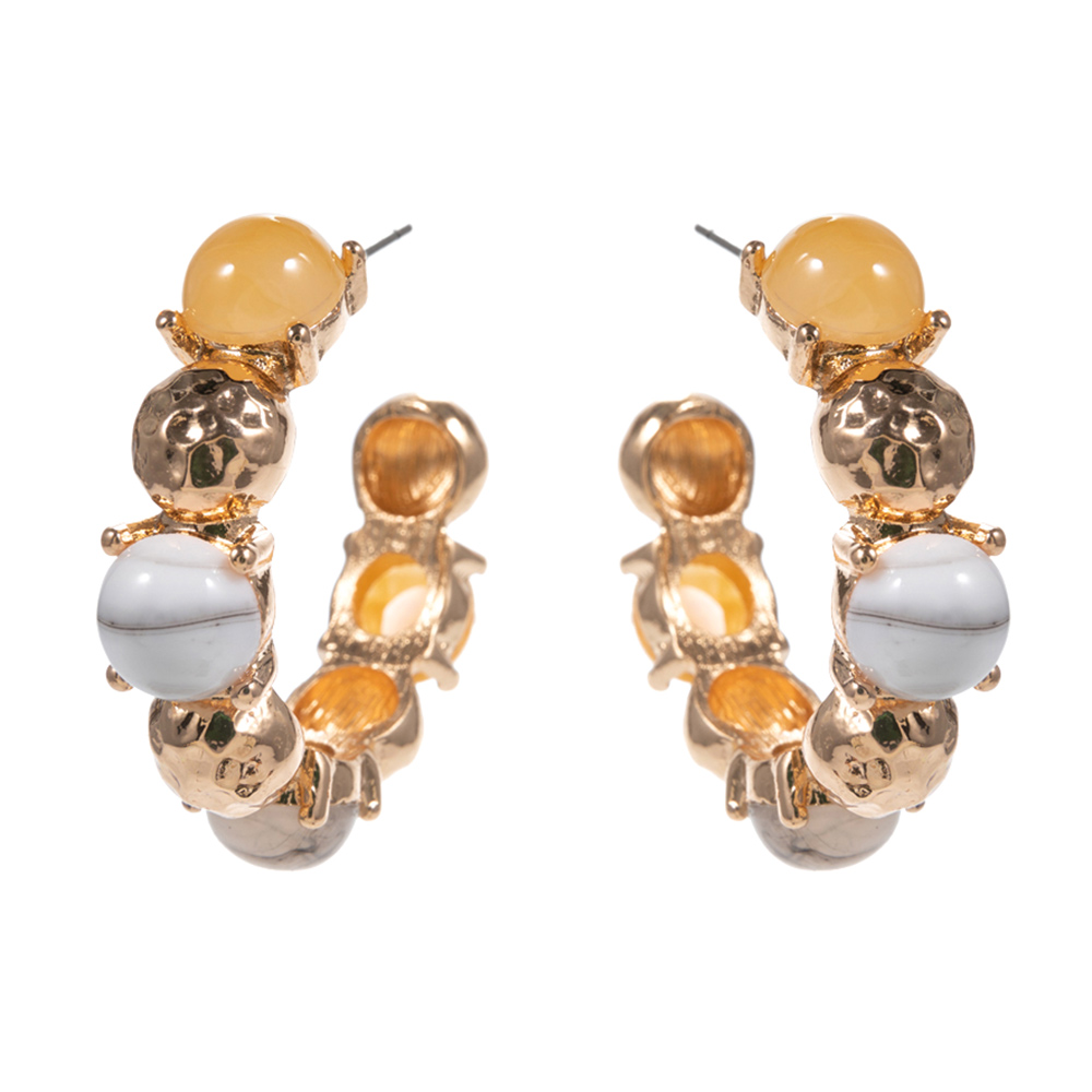• These beaded hoop earrings feature a bold curved silhouette accented with mixed shape bead details for a playful yet elevated statement. Designed with dimensional texture and eye-catching form, they add personality to everyday outfits and styled looks. A versatile accessory ideal for boho-inspired collections, fashion-forward assortments, or gifting, offering a unique balance of structure and charm.