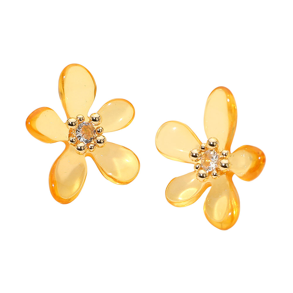 Round Center Stone Accent Transparent Resin Petal Flower Earrings Round Center Stone Accent Transparent Resin Petal Flower Earrings