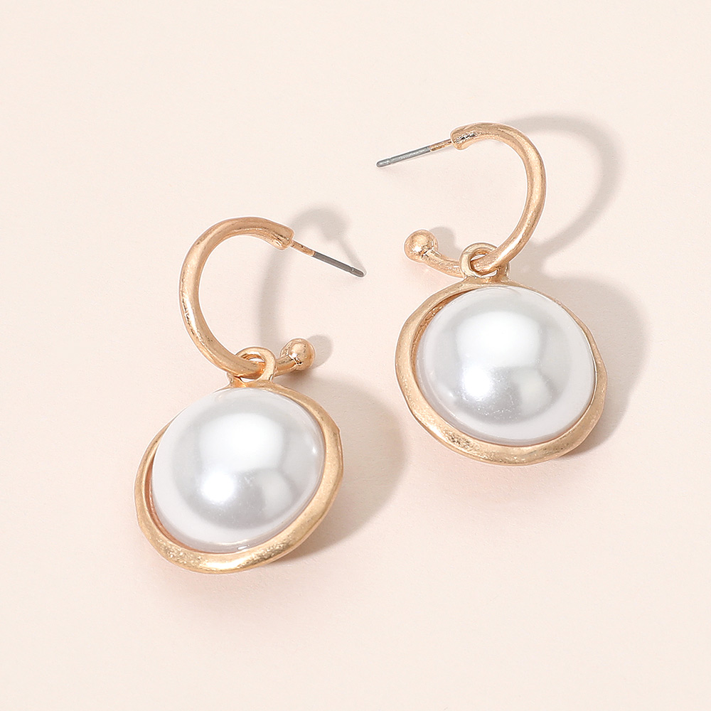 Details • Size : 0.8" X 1.75" • Post Back • Add a refined sparkle to your style with these Round Pearl Drop Hoop Earrings. Featuring a stunning faceted stone set in a sleek round frame, these earrings offer timeless charm and elegance, perfect for both everyday wear and evening occasions. • Lead and Nickel Compliant