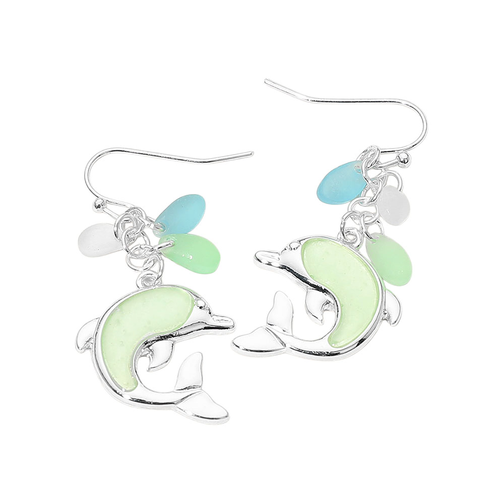 Sea Glass Dolphin Drop Dangle Earrings Sea Glass Dolphin Drop Dangle Earrings