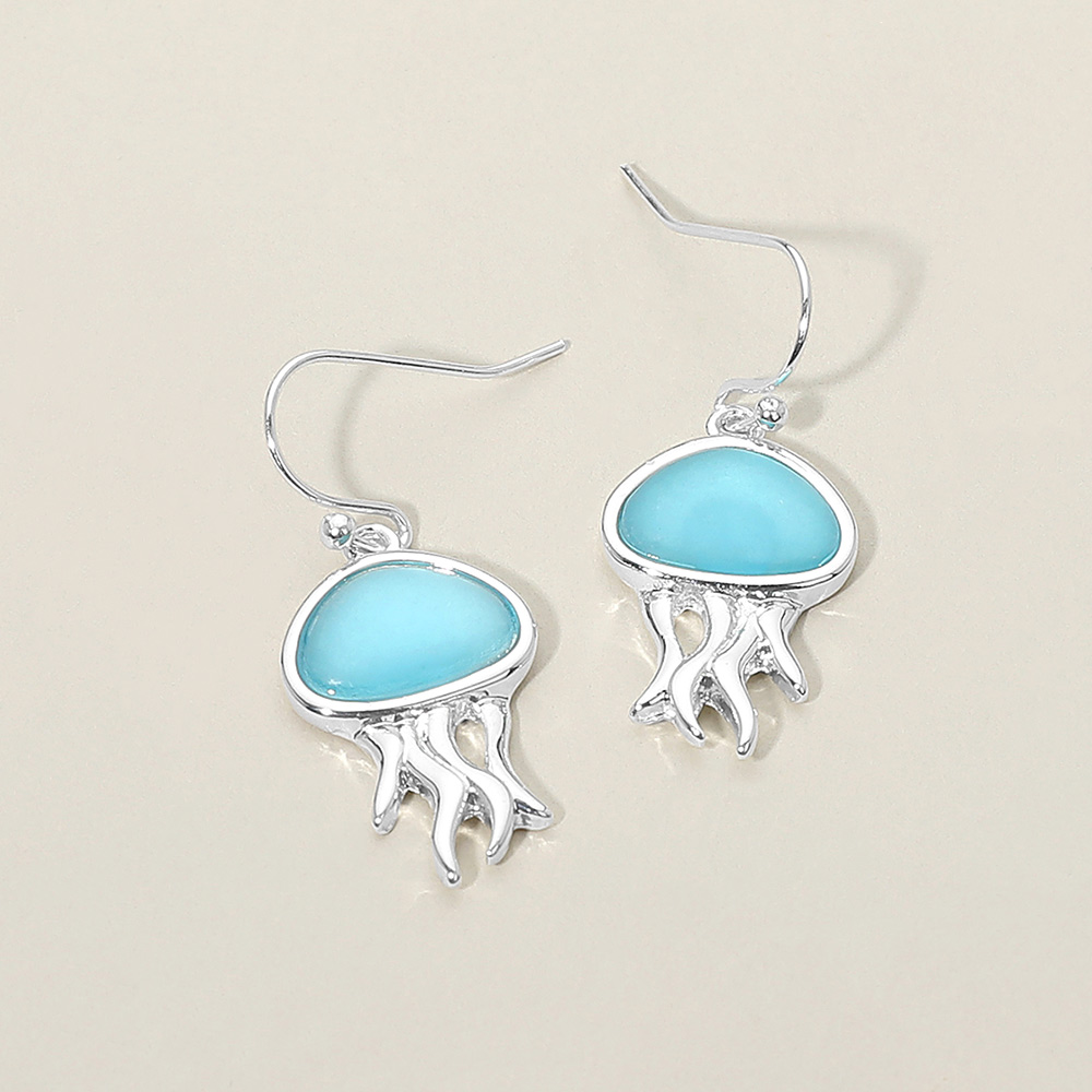 • Whimsical jellyfish dangle earrings featuring a smooth domed center and flowing tentacle details. Designed with lightweight movement and a classic hook style, these earrings add playful charm to summer looks, beach themes, coastal boutiques, resort wear collections, and gift-ready accessory assortments.