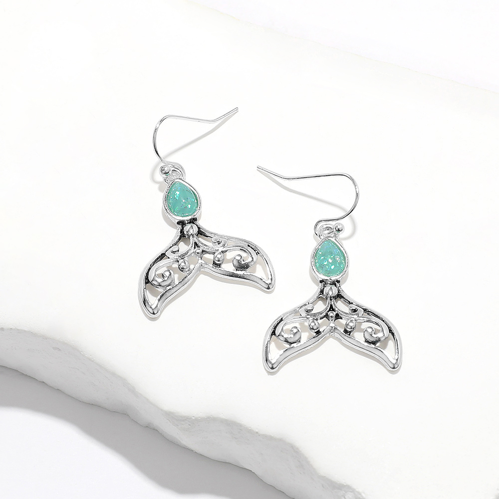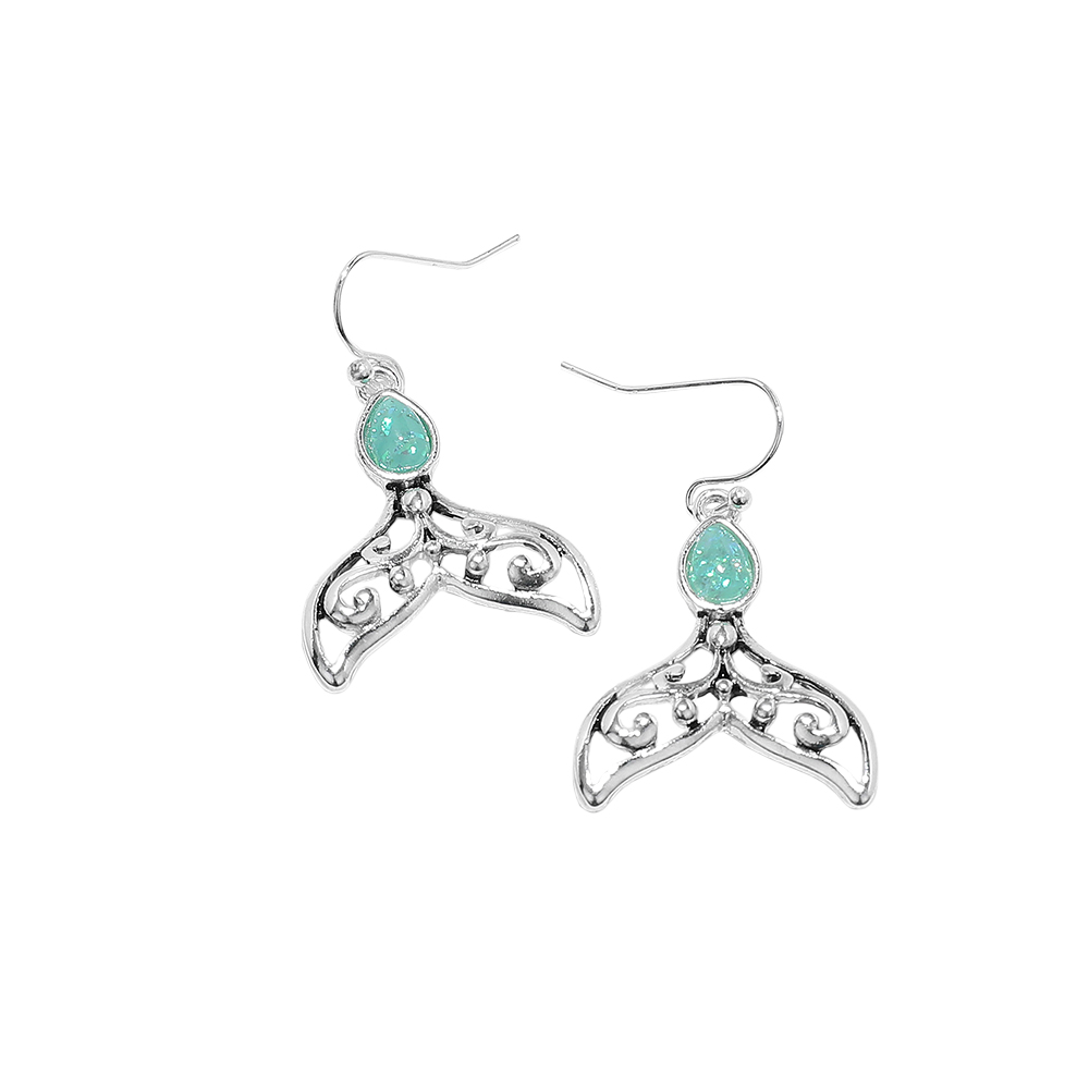 Sea Glass Pointed Metal Whale Tale Dangle Earrings