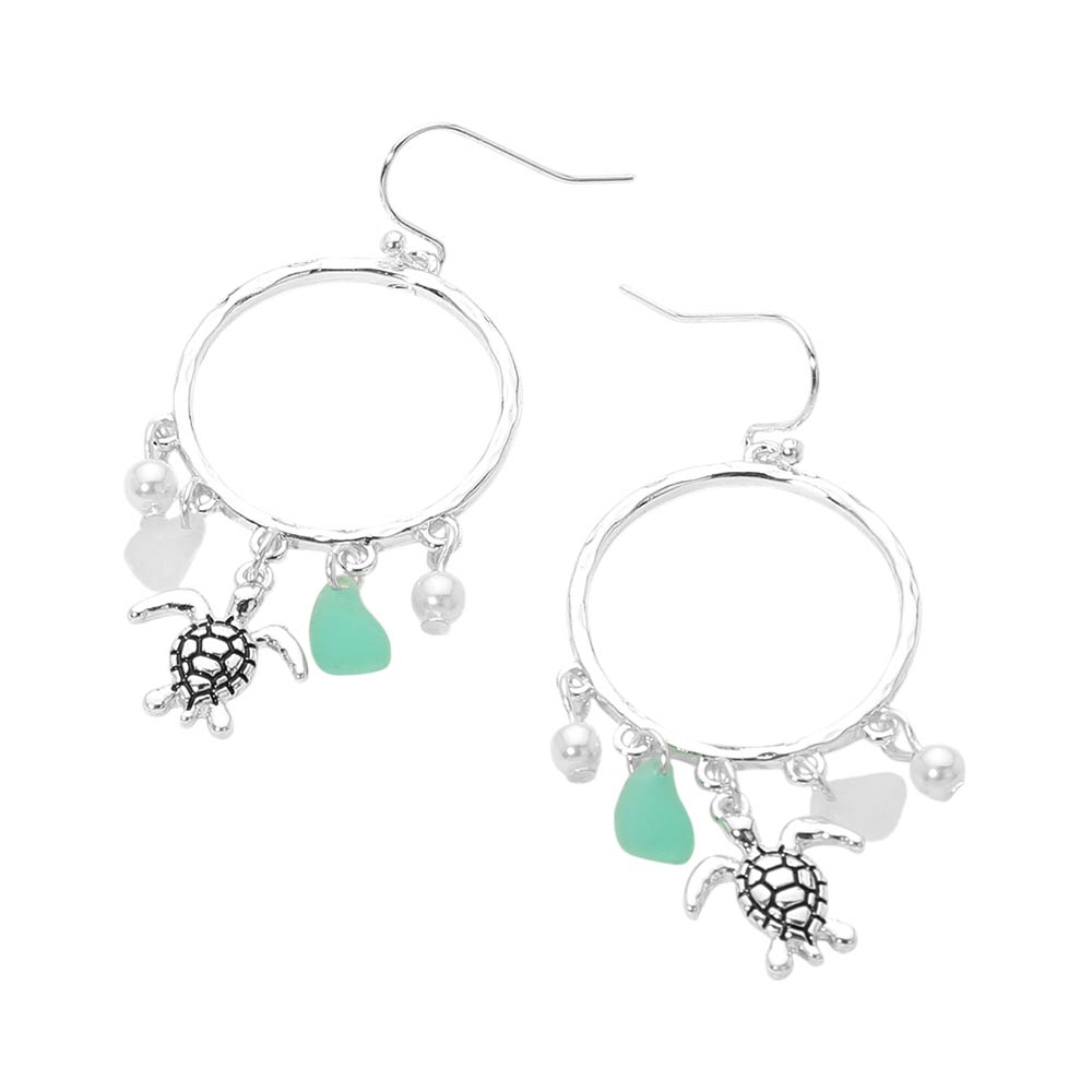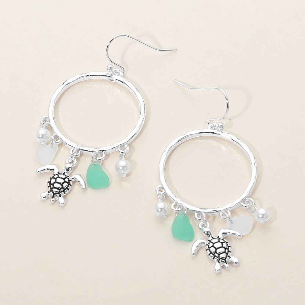 Sea Turtle Sea Glass Charm Drop Open Ring Dangle Earrings Sea Turtle Sea Glass Charm Drop Open Ring Dangle Earrings