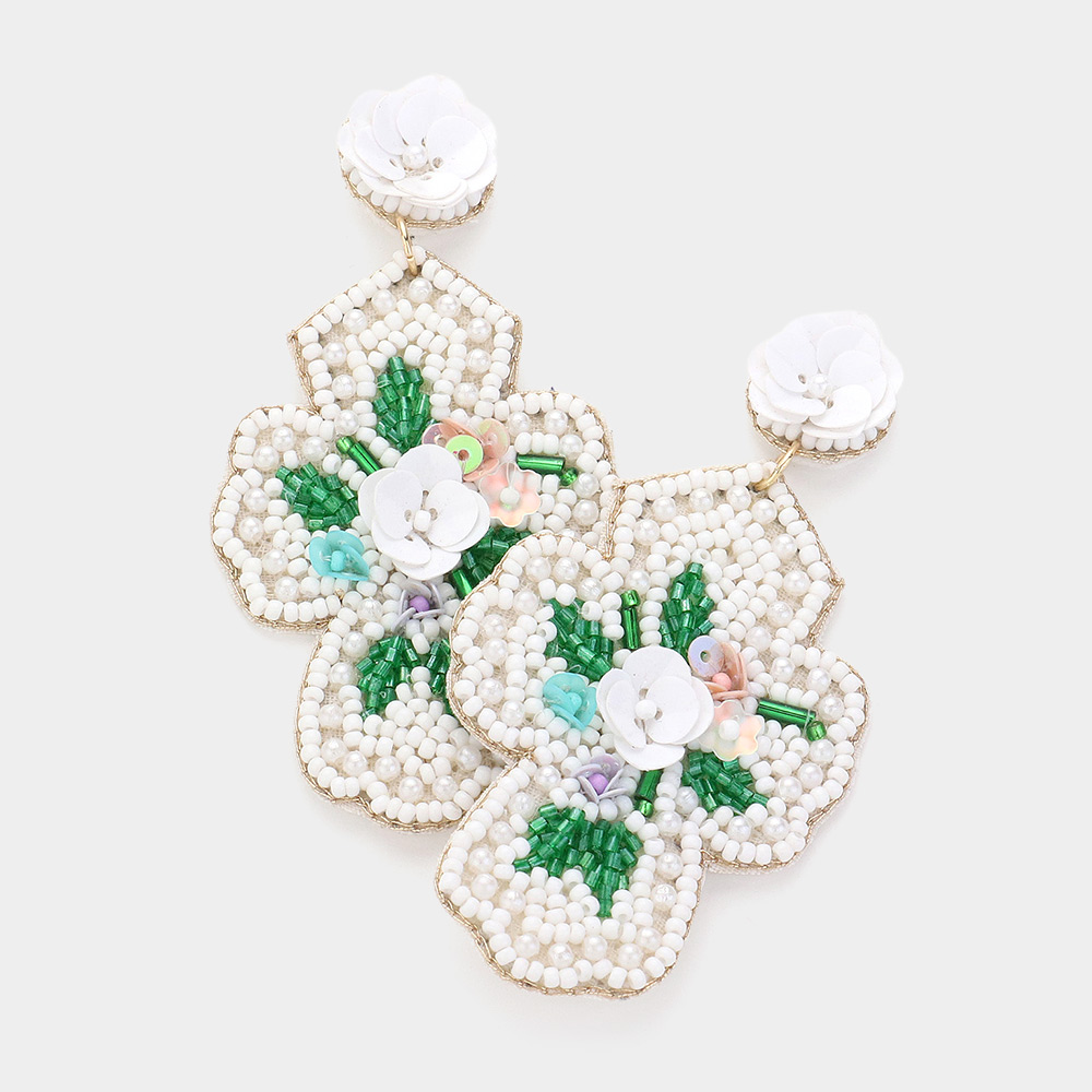 Clear Quatrefoil Cluster Station Pearl Long Necklace