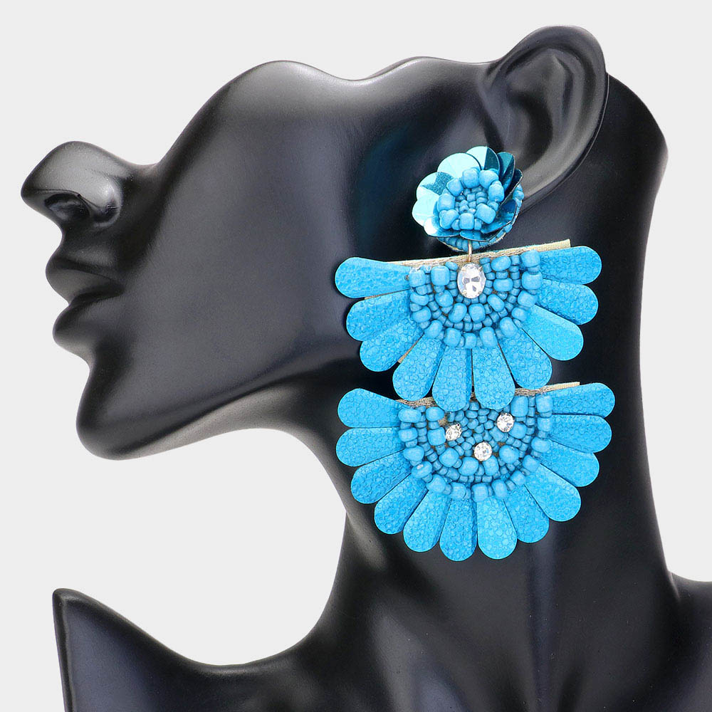 Crushed Colored Metal Flower Butterfly Link Dangle Earrings