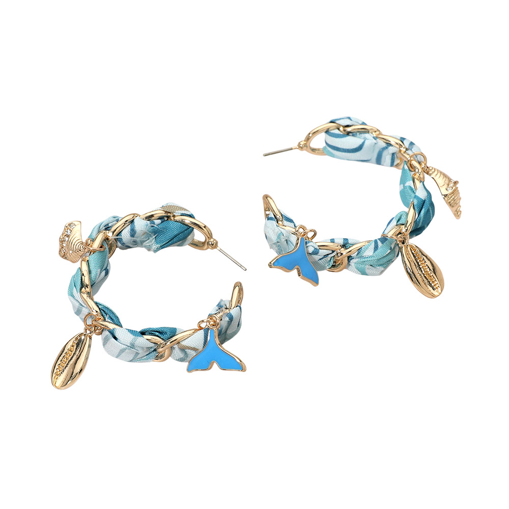 Details • Size : 2" X 2.5" • Post Back • Statement twisted hoop earrings designed with playful sea-inspired charms for a bold, eye-catching look. A trendy accessory choice for beach themes, resort collections, and summer displays, these hoops add movement and personality to any assortment, making them ideal for boutiques seeking fun, giftable fashion jewelry that attracts attention and drives impulse sales. • Lead and Nickel Compliant