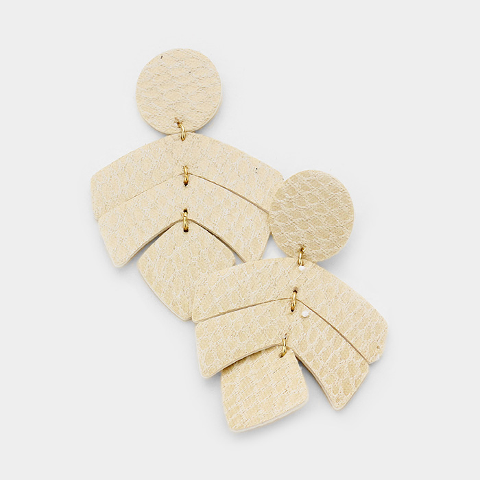 Snake Skin Patterned Geo Leather Link Leaf Earrings