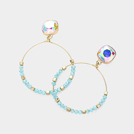 Square Glass Stone Pointed Faceted Beaded Open Circle Dangle Earrings