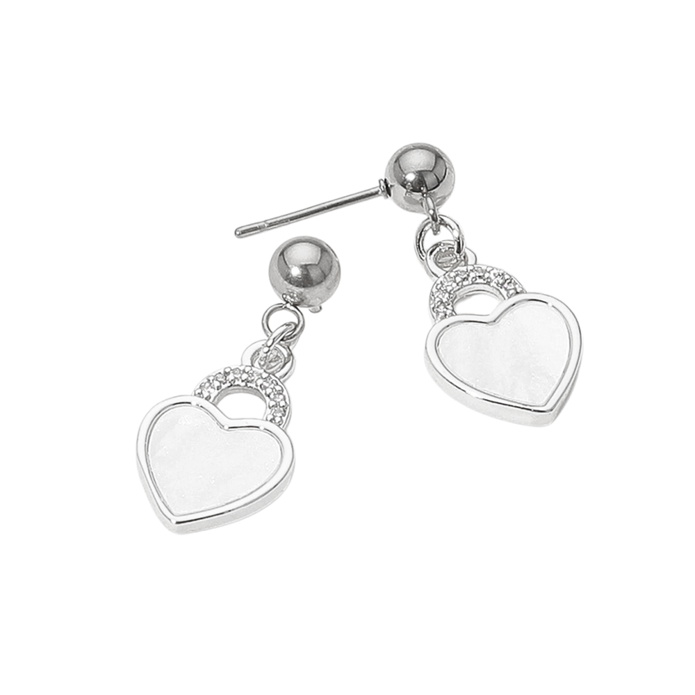 Stainless Steel CZ Stone Accent Mother of Pearl Heart Charm Dangle Earrings