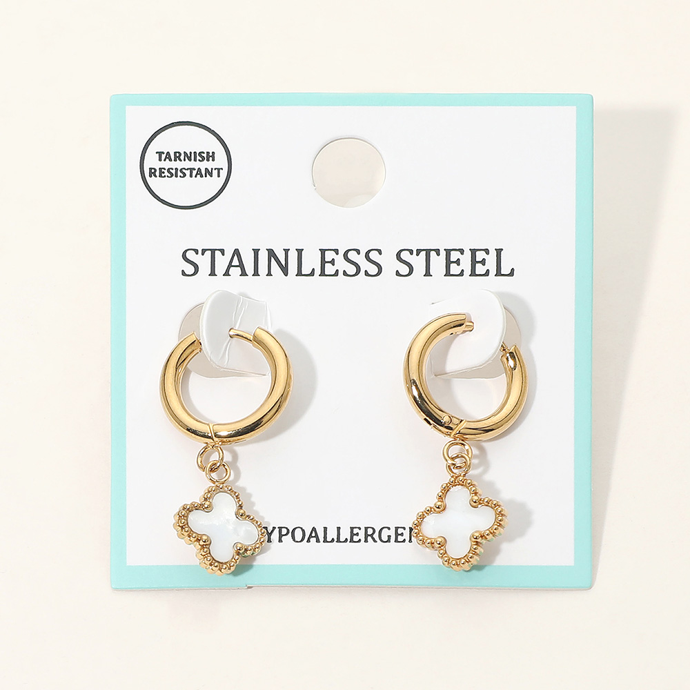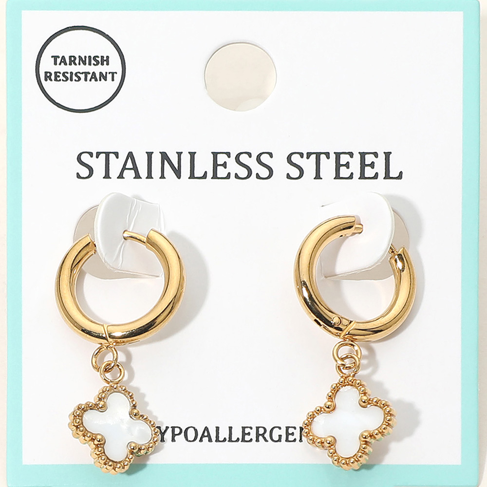 Stainless Steel Mother of Pearl Quatrefoil Charm Drop Dangle Huggie Hoop Earrings Stainless Steel Mother of Pearl Quatrefoil Charm Drop Dangle Huggie Hoop Earrings Stainless Steel Mother of Pearl Quatrefoil Charm Drop Dangle Huggie Hoop Earrings