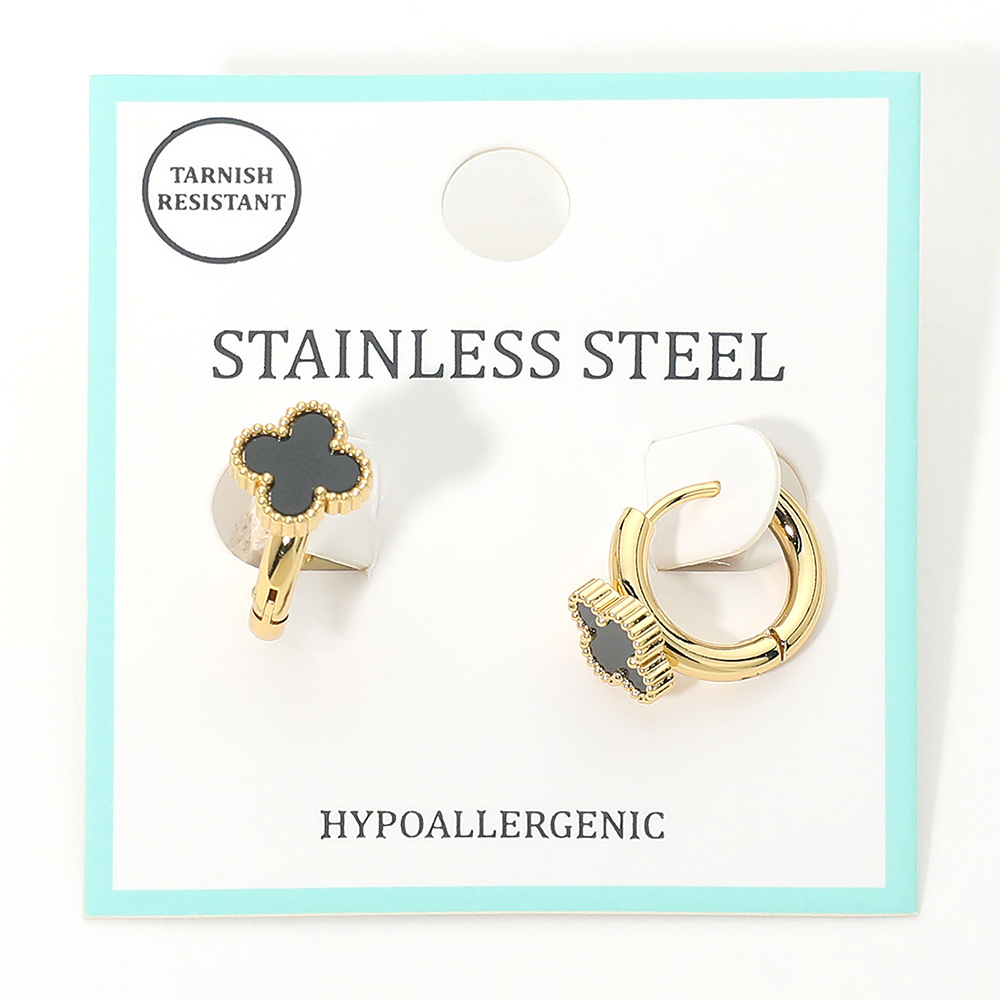 Stainless Steel Quatrefoil Accent Huggie Hoop Earrings Stainless Steel Quatrefoil Accent Huggie Hoop Earrings Stainless Steel Quatrefoil Accent Huggie Hoop Earrings
