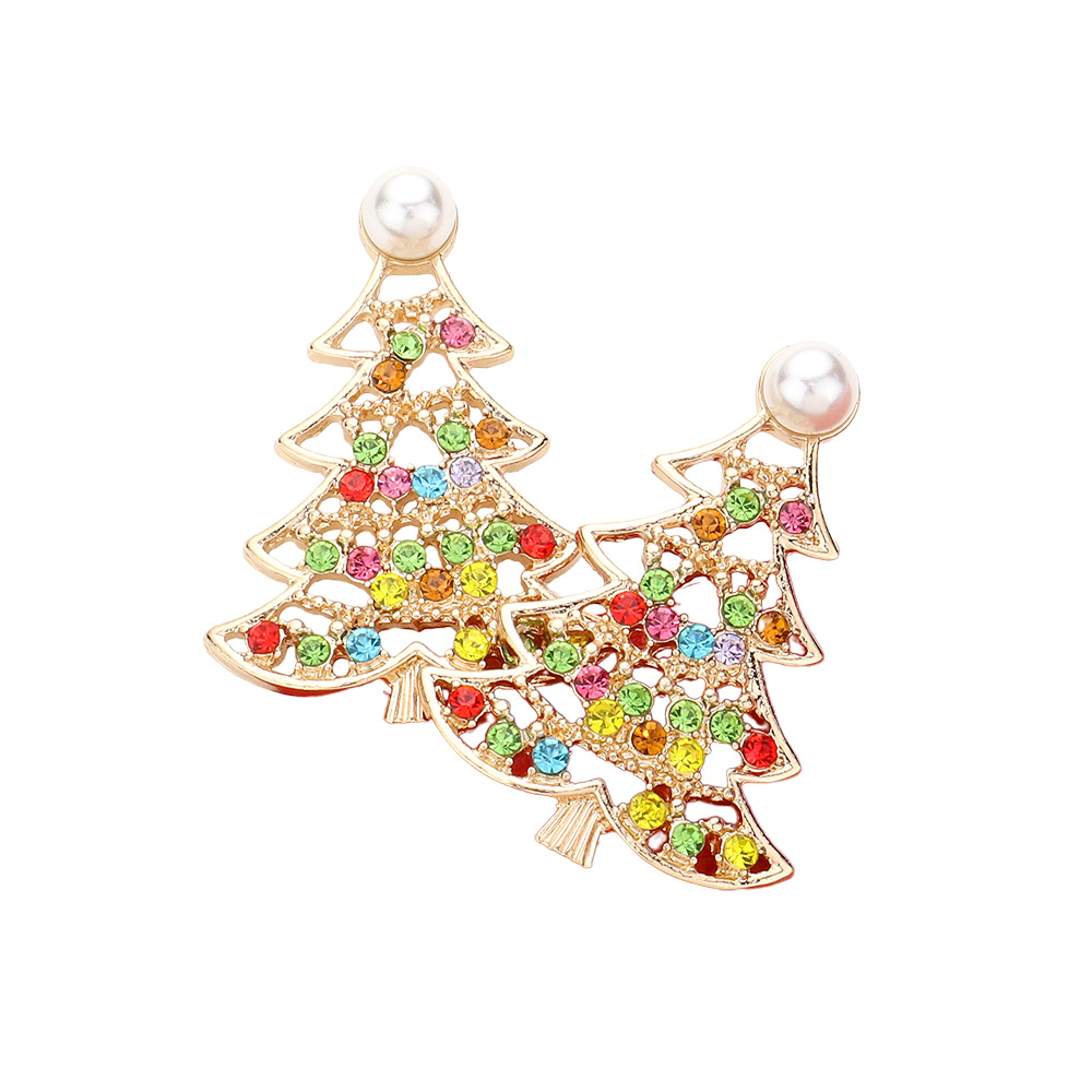 Stone Embellished Cutout Christmas Gift Brass Metal Round Dangle Earrings