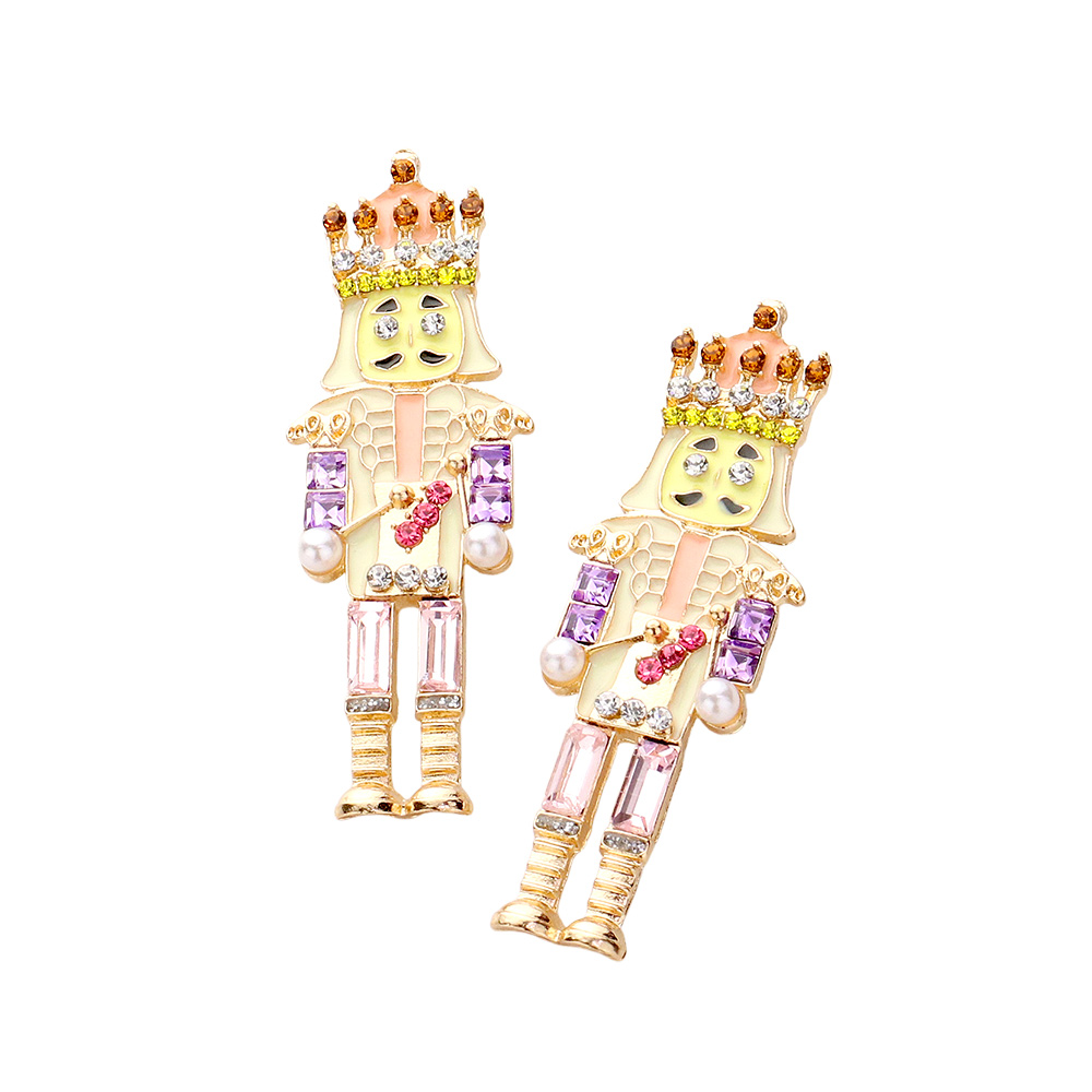 Details • Size : 0.75" X 2.2" • Post Back • Add a touch of whimsy to your holiday style with these jeweled nutcracker drop earrings. Designed with intricate detailing and brilliant embellishments, they capture festive elegance while offering a playful yet sophisticated charm perfect for special occasions. • Lead and Nickel Compliant
