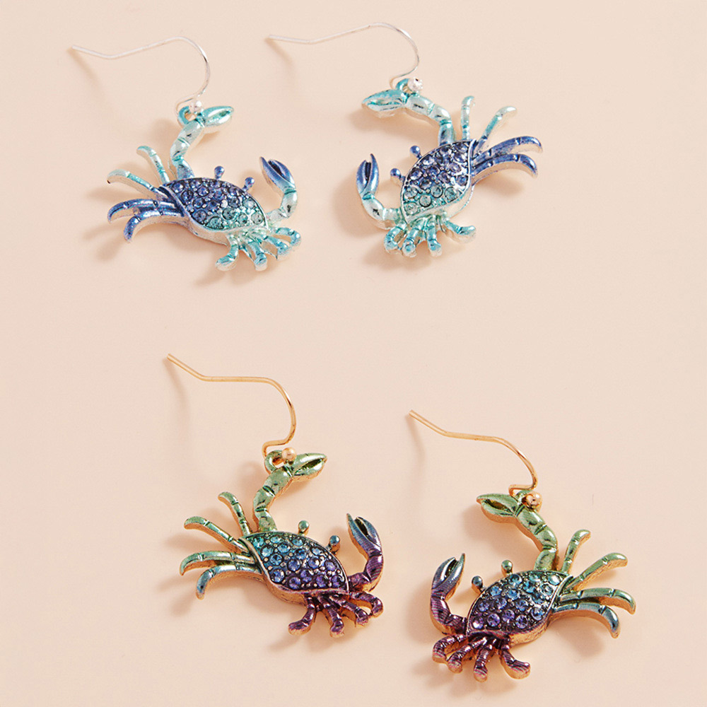 Enamel Wave Antique Metal Seashell Starfish Sand Dollar Link Dangle Earrings