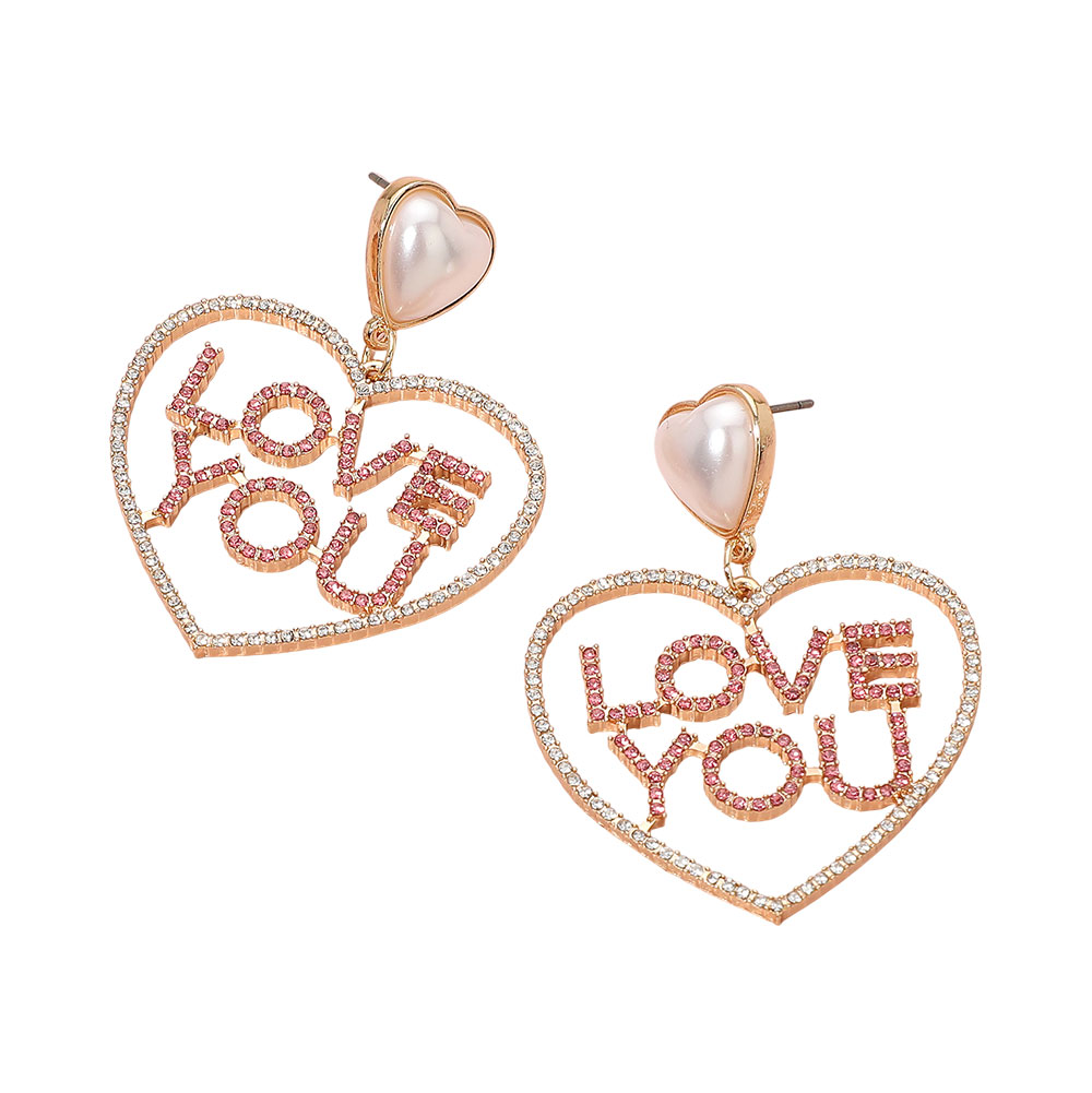 • Celebrate romance and sparkle with these “Love You” heart statement earrings. Designed with a radiant open-heart silhouette and shimmering accents, they bring elegance and emotion to any ensemble. Perfect for gifting or adding a sweet, stylish touch to special occasions.