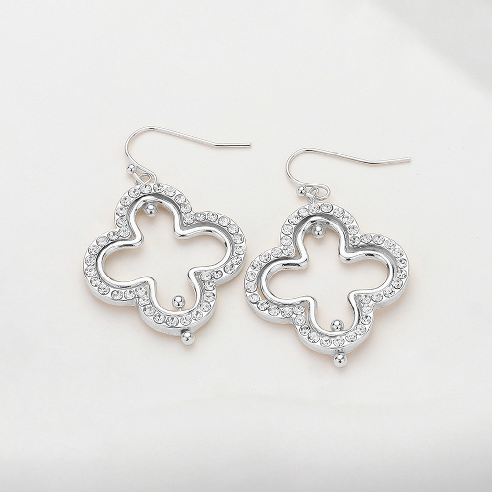 3PCS - Semi Precious Quatrefoil Metal Band Mixed Rings