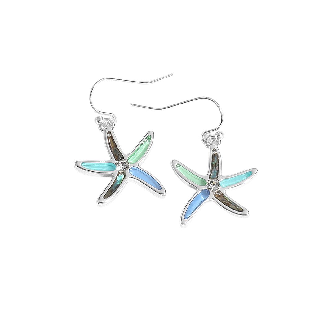 Stone Pointed Abalone Sea Glass Starfish Dangle Earrings