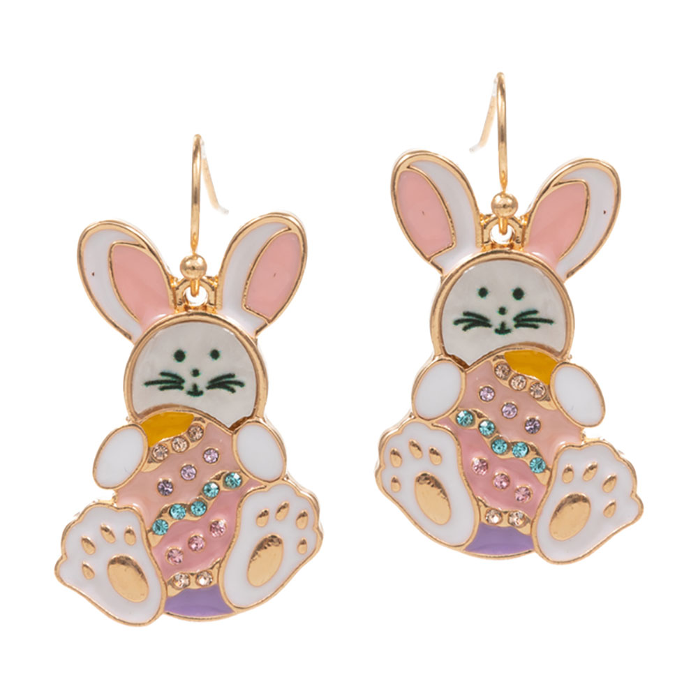 Details • Size : 0.75" X 1.25" • Fish Hook Back • Add playful sparkle to spring style with these Easter bunny dangle earrings featuring a charming character design with shimmering accents. Ideal for holiday outfits, themed celebrations, gift baskets, or fun everyday looks that embrace a cheerful seasonal vibe. • Lead and Nickel Compliant
