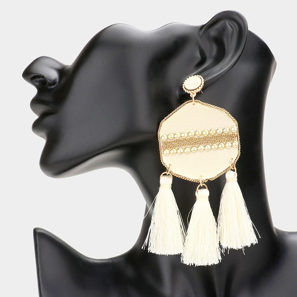Metal Flower Rhinestone Pave Tassel Hoop Earrings